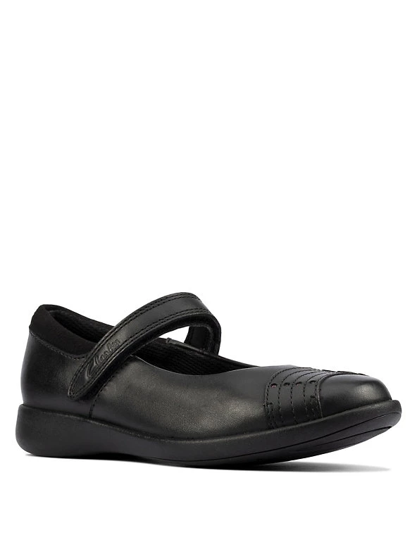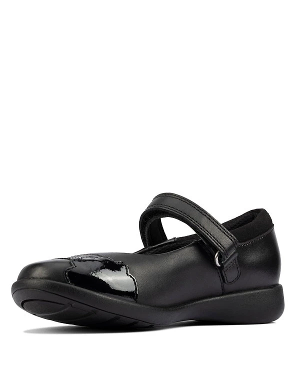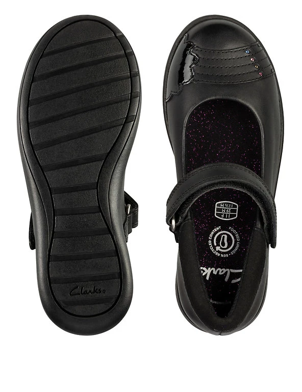 Start every day with a rainbow in these leather Mary Jane shoes from Clarks. They’re made with durable soles for firm grip, and a quick, easy rip-tape bar fastening. They feature a stitched rainbow design on the round toe, with a shiny patent cloud and eye-catching multicoloured gems.