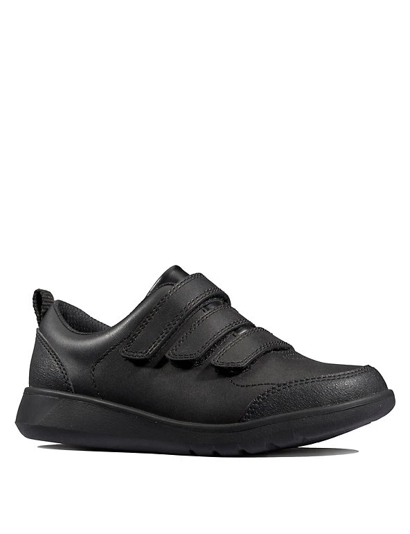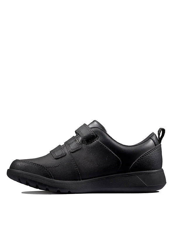 These leather school shoes from Clarks are perfect for active kids. They’re made with durable soles, plus a triple riptape fastening for a secure fit. The padded collar keeps growing feet comfortable, along with a protective finish on the heel and toe. They have a lightweight rubber sole with flex grooves for easy movement.