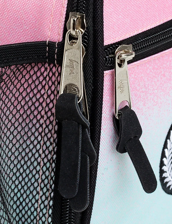 Kids will love the colourful gradient print on this HYPE lunch box. Designed with plenty of space, this lined lunch box has a secure double-zip fastening and a mesh pocket for extra storage. It has a zipped pocket at the front, plus a handy carry handle and removable strap. An embroidered brand logo patch on the front adds the final finishing touch.