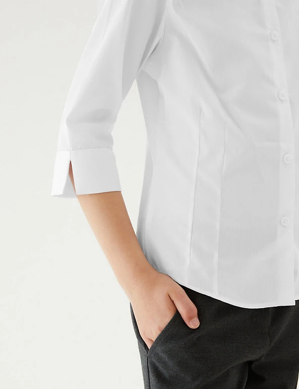 These fashionable school shirts have classic point down collar as well as three quarter sleeves and come in a handy two pack. Completed with our ever so clever Easy to Iron finish, a quick press and they are ready to go. We are transitioning the polyester in this garment to recycled polyester. While we transition, customers may receive items made with either sustainable sourced cotton and recycled polyester or just sustainable sourced cotton and polyester.