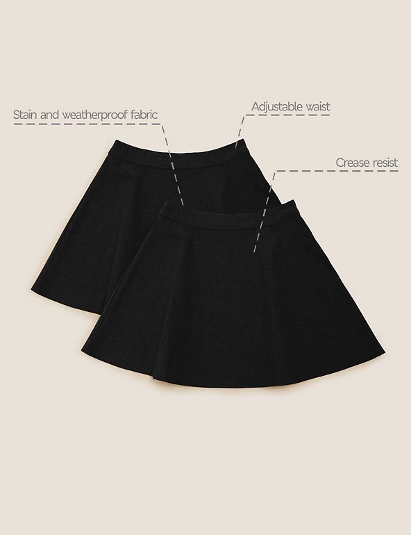 Stock up on school essentials with this two-pack of skater skirts. Cut to a regular fit with an adjustable waist to keep them comfy as they grow. Made with crease-resistant fabric for hassle-free laundering and finished with our water-repellent Stormwear™ technology.