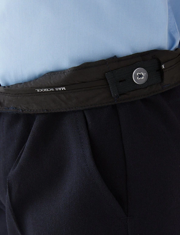 Style and practicality meet with these regular leg school trousers designed with a straight leg and front pleat for a classic look. Stain and Weatherproof finish repels water and stains and Crease Resistant material ensure they look neat all day long. With our clever Supercrease technology crease lines stay put wash after wash and grow proof hems will make them last all year, just unpick and press for an extra 3cm. Adjustable waist for a perfect fit. Made with recycled polyester and sustainable viscose.