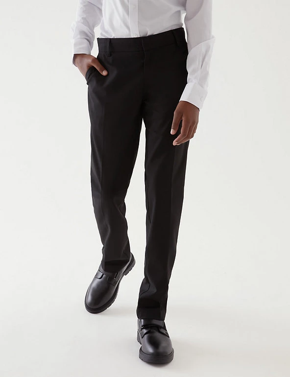 Product Length: Long, Plus fit, Trouser Style: Flat front, Elastic back waistband with zip and hook and bar fastening for- 6-10 years