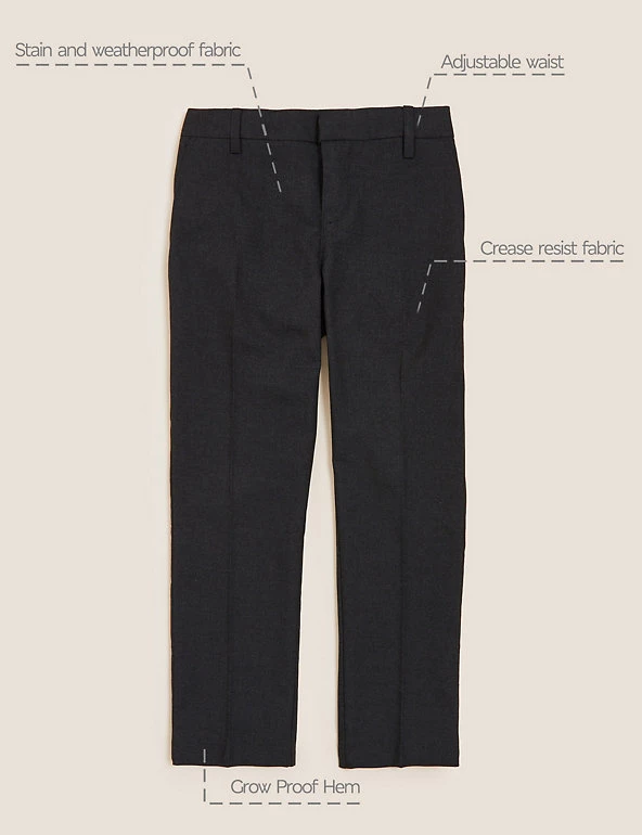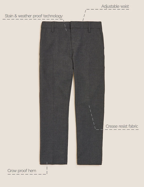 Flat waistband with zip and hook and bar fastening for-10-11+ , Our crease resistant technology stops clothes from creasing during wear, and ensures creases fall out more easily, Stain & weatherproof: a durable finish that repels water and stains