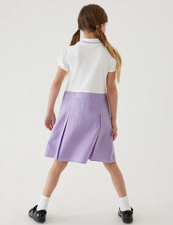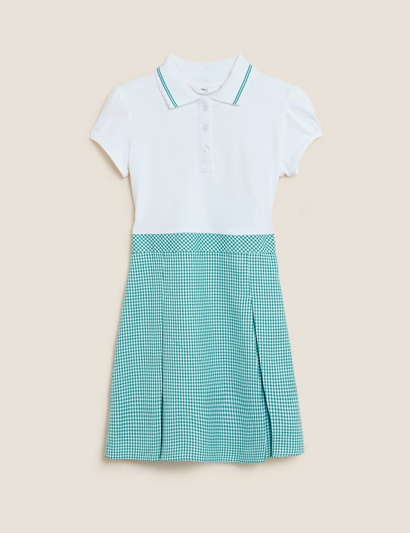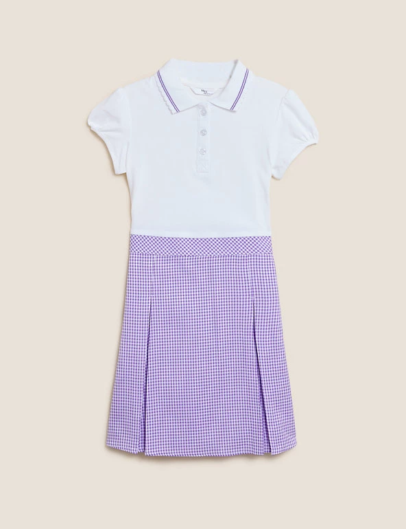 Look smart with this school dress that features a clever 2 in 1 design. Cut in a regular fit with a side zip closure. Polo shirt top half with coordinating gingham skirt. Our easy-to-iron finish means it just needs a quick press and it’s good to go.We only ever use responsibly sourced cotton for our clothes.