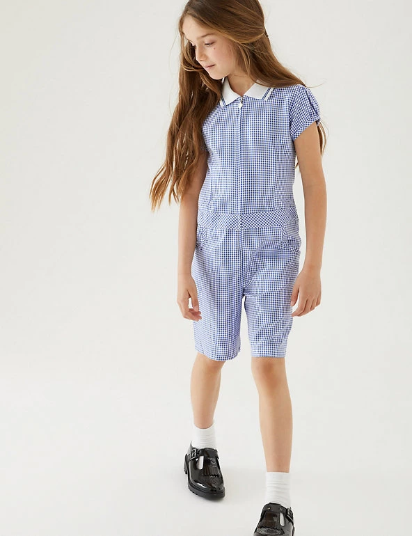 This school playsuit is both stylish and practical and offers more freedom to run, jump and climb in full comfort. Our easy-to-iron finish ensures it just needs a quick press and it’s ready to go.