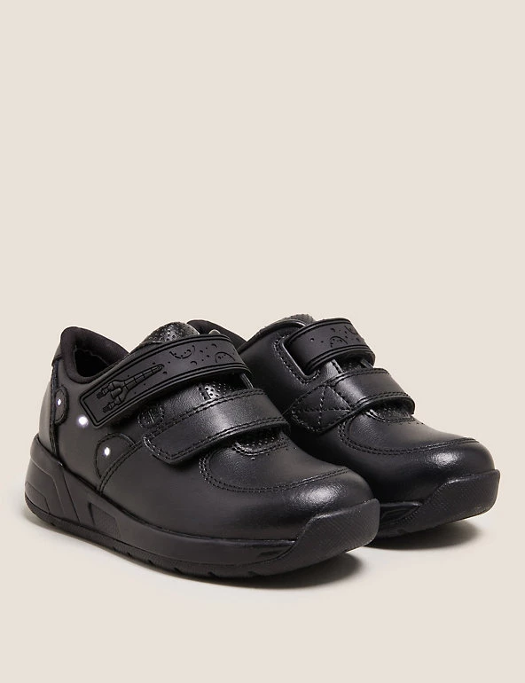 Add some awe to sensible schoolwear with these rocket-themed shoes. Riptape fastenings for easy on and off. Lights on the sides that can be switched on or off. Squidgy underfoot foam and soft collar padding put kid’s comfort first. Freshfeet⢠technology works to prevents odours. Handy scuff-resistant finish with non-marking soles to protect indoor floors. Made with sustainably sourced leather.