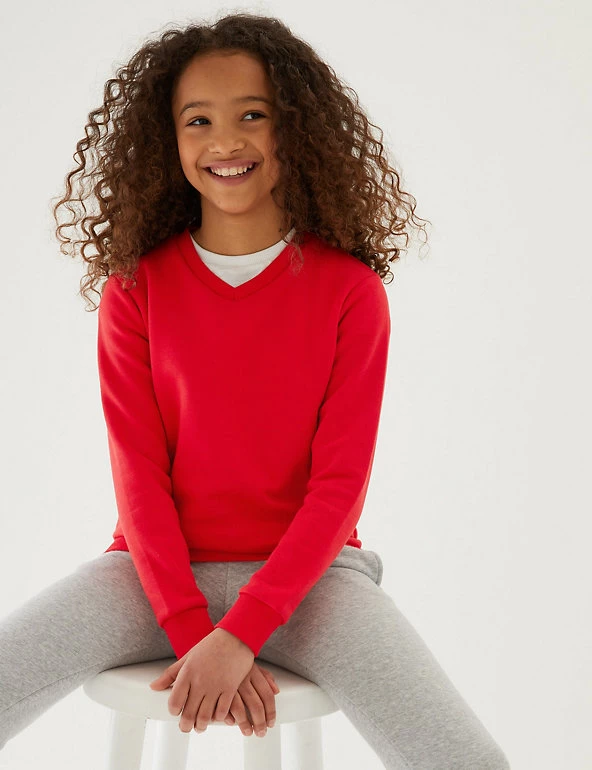 This unisex sweatshirt is made from a breathable, cotton-rich material to keep them comfy all day. V-neck with a regular fit. It’s made with our StayNew™ technology to keep its colour rich and bobble-free, wash after wash. We only ever use responsibly sourced cotton for our clothes.