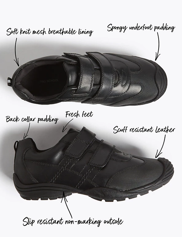 With anti-marking and Freshfeet™ finishes, we’ve added plenty of clever extras to these kids’ shoes. Boasting two rip tapes and a mesh design across the foot, these school shoes offer fantastic comfort all day long, with Insolia Flex® keeping young feet supported. A toe bumper completes the design of these durable and smart leather shoes.