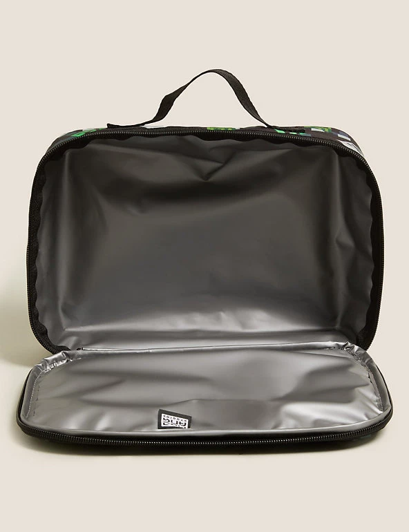 You won’t have to convince gamers to stop for a bite to eat with this cool Minecraft™ lunch box. Secure zip fastening and a carry handle for easy use. Features an all-over character design and a Minecraft™ patch on the front. An inner name tag helps avoid any mix-ups. Our clever Thinsulate™ technology keeps food fresh until lunchtime. Easy-to-clean seamless lining and machine washable for stubborn stains.