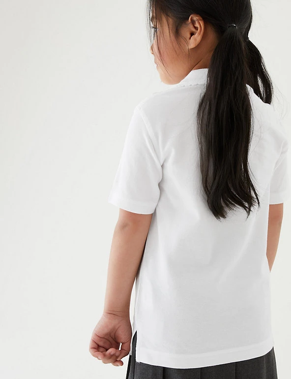 High-quality and durable, these pure cotton multipack regular fit school shirts are stain resistant ensuring protection from spills and splashes . They also come with StayNEWâ„¢ technology that reduces bobbling and colour loss, keeping them looking newer and brighter for longer. These polo shirts have a scallop collar for a stylish look. We are transitioning this garment to organic cotton. While we transition, customers may receive items made with either sustainably sourced cotton or sustainably sourced organic cotton. We only ever use responsibly sourced cotton for our clothes.