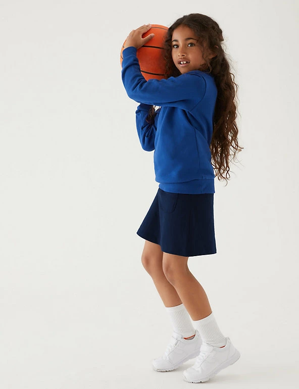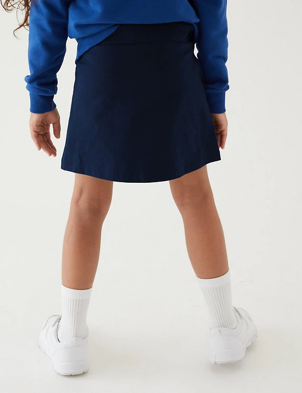 Combining the comfort of a pair of shorts with the sporty style of skirt, this pair of shorts offer freedom and flexibility for school sports. They feature our StayNEWâ„¢ technology that reduces bobbling and colour loss, keeping them newer and brighter for longer. Made with added stretch for extra comfort. We are transitioning this garment to organic cotton. While we transition, customers may receive items made with either sustainably sourced cotton or sustainably sourced organic cotton.We only ever use responsibly sourced cotton for our clothes.