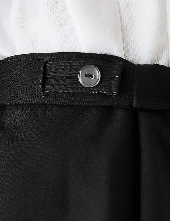 This children’s skirt features a metal buckle detail, adding a touch of style to an everyday essential item. Stain and Weatherproof finish repels water and stains and Crease Resistant material helps creases fall out easily. With Permanent Pleat technology to make sure pleats stay put wash after wash and an adjustable waist for perfect fit. Made with recycled polyester and sustainable viscose.